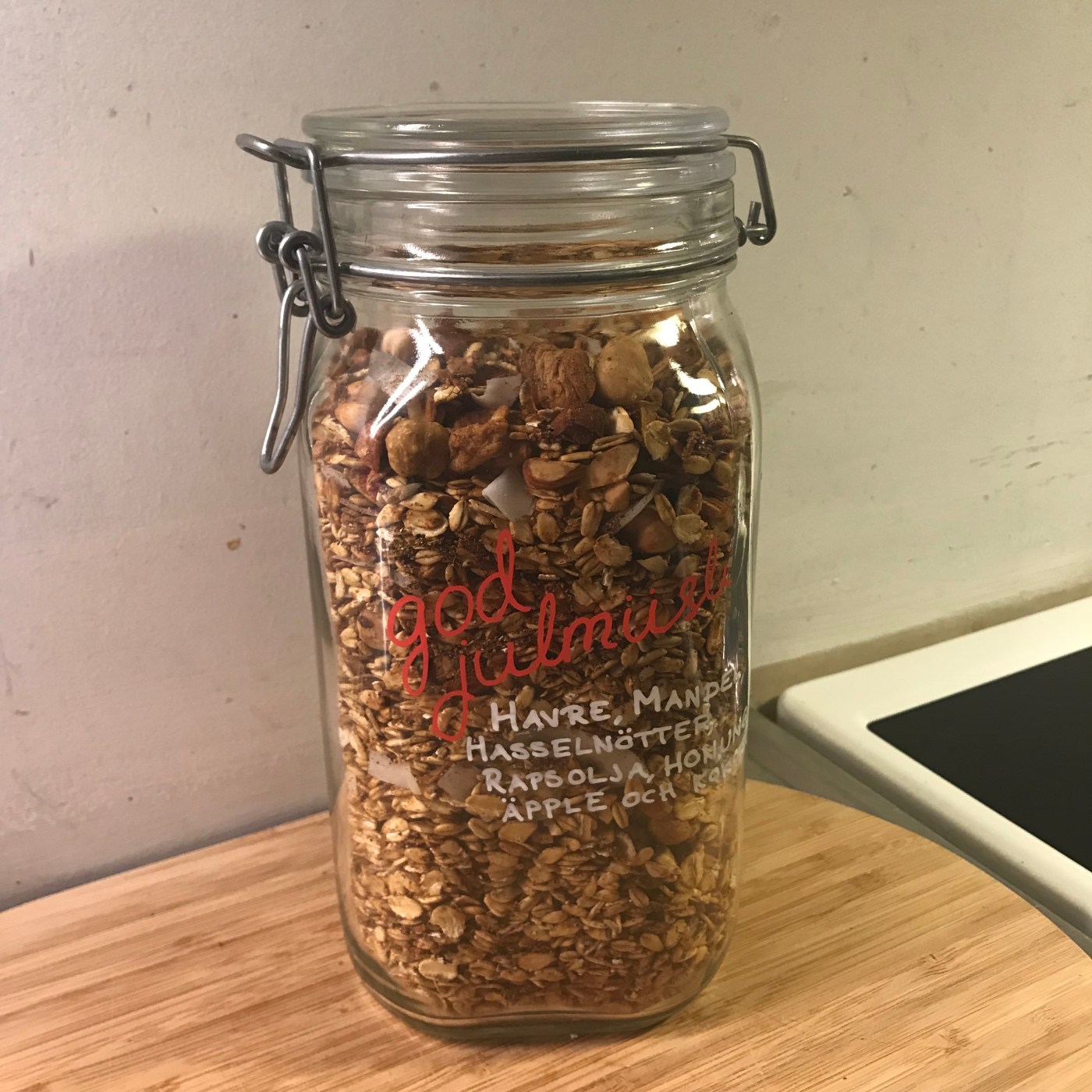 Det är så svårt att köpa julklappar till de som redan har allt. Men ät- och drickbara klappar funkar ju alltid. Eller nej, alkohol och choklad kanske blir helt fel att ge till den som försöker undvika godsaker. Därför vill jag slå ett slag för egen müsli – det måste vara den ultimata julklappen att ge bort. Dessutom är det nästan löjligt enkelt att göra egen.
