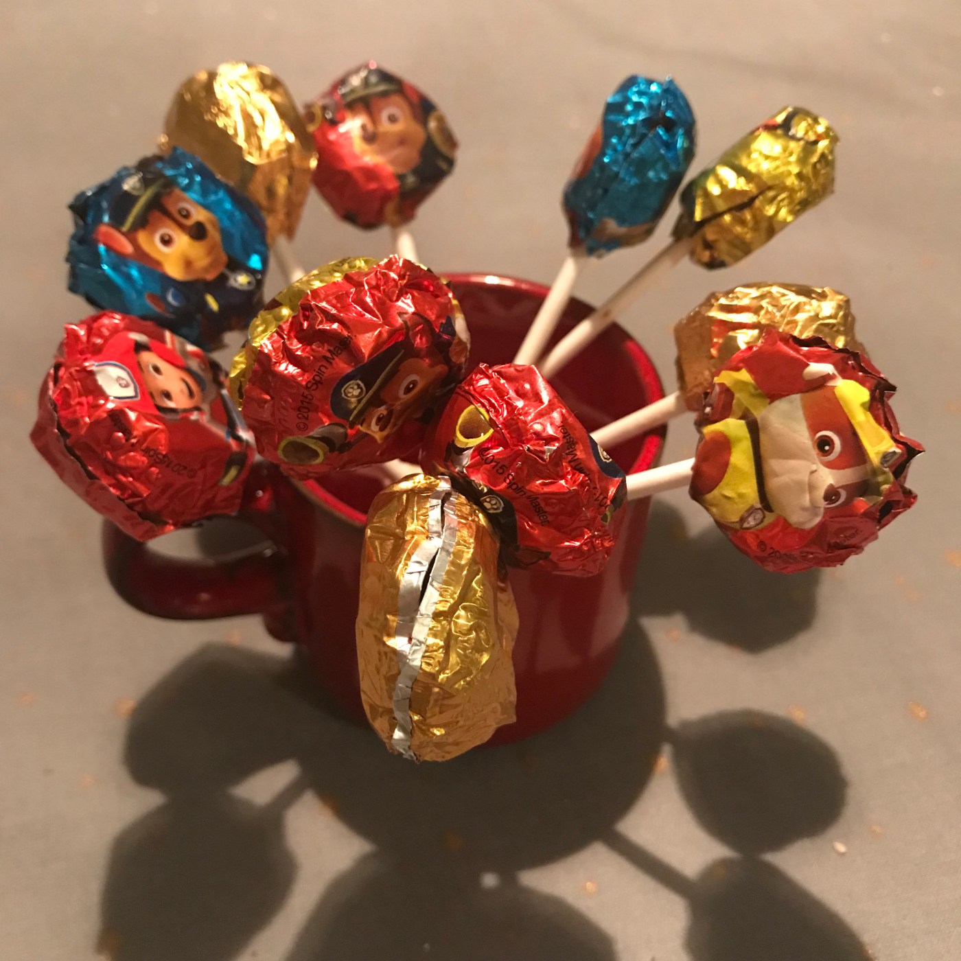 Vik upp kanterna på godispappret och lägg runt godisklubban.