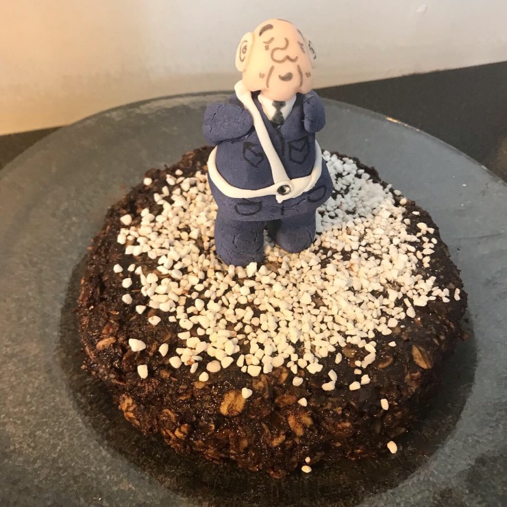 Så här blev tårtan, eller tårtorna eftersom jag även gjorde en chokladbollstårta så att även ägg- och mjölkallergikern skulle få tårta: