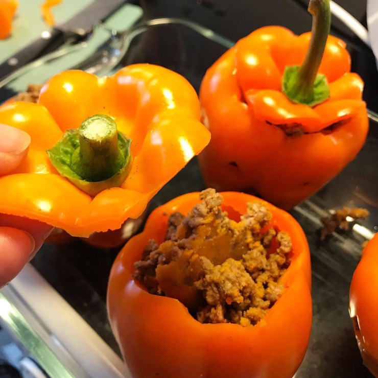 Perfekt att göra fyllda paprikor i ugn dagen efter tacos! Åtminstone vi får alltid rester. Dessutom blev ju det här extra gott när vi skippade brödet.