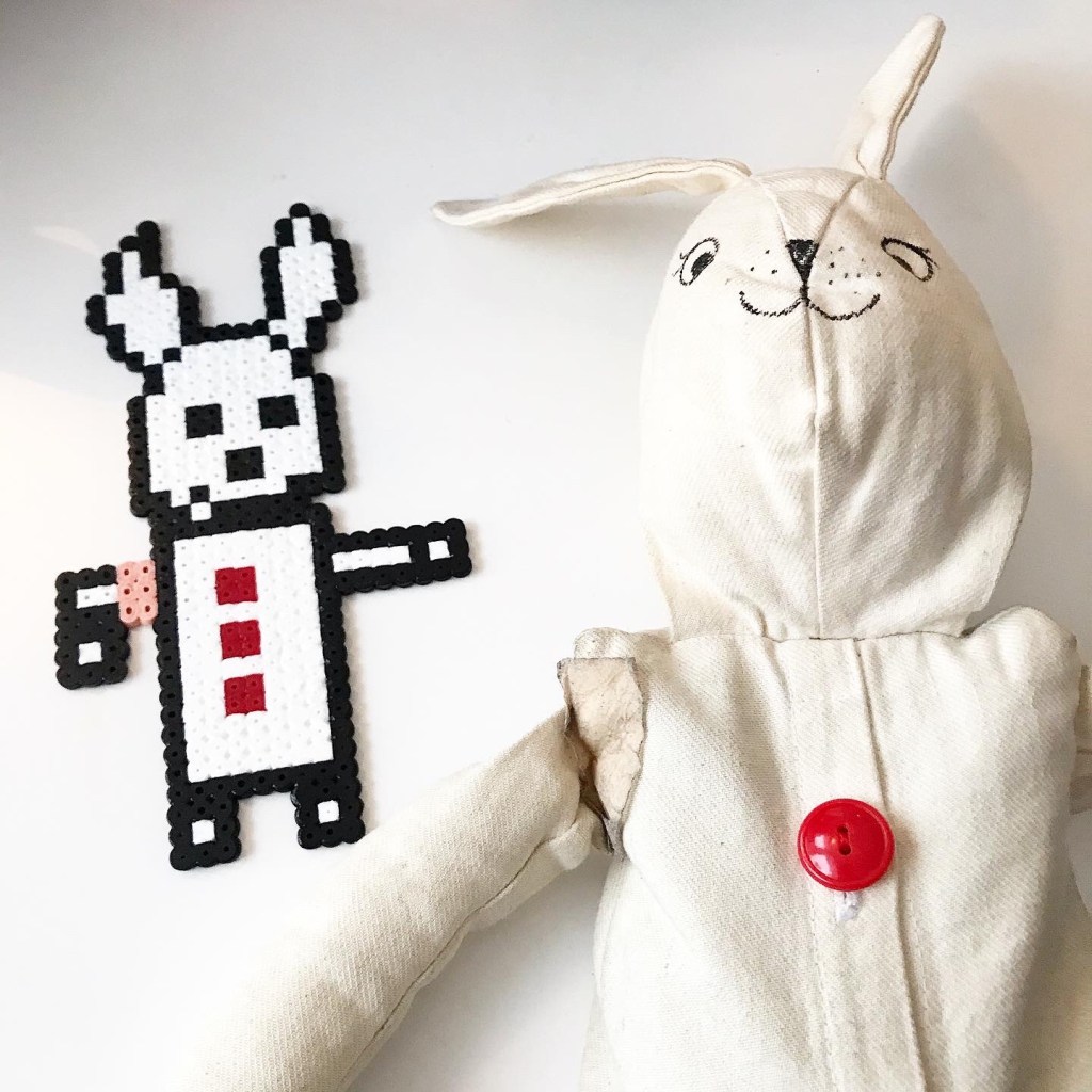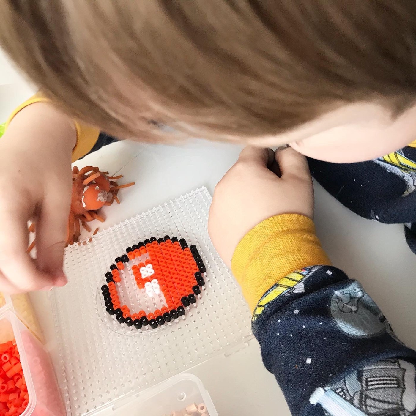 Hur som helst har jag varit hemma med sonen några dagar och vi har hunnit med att vara kreativa också. Vi satt länge med hama-pärlor och skapade. Det roligaste var nog att vi inte använda några mallar den här gången. I stället var det Johns leksaker och favoriter från böcker som inspirerade.