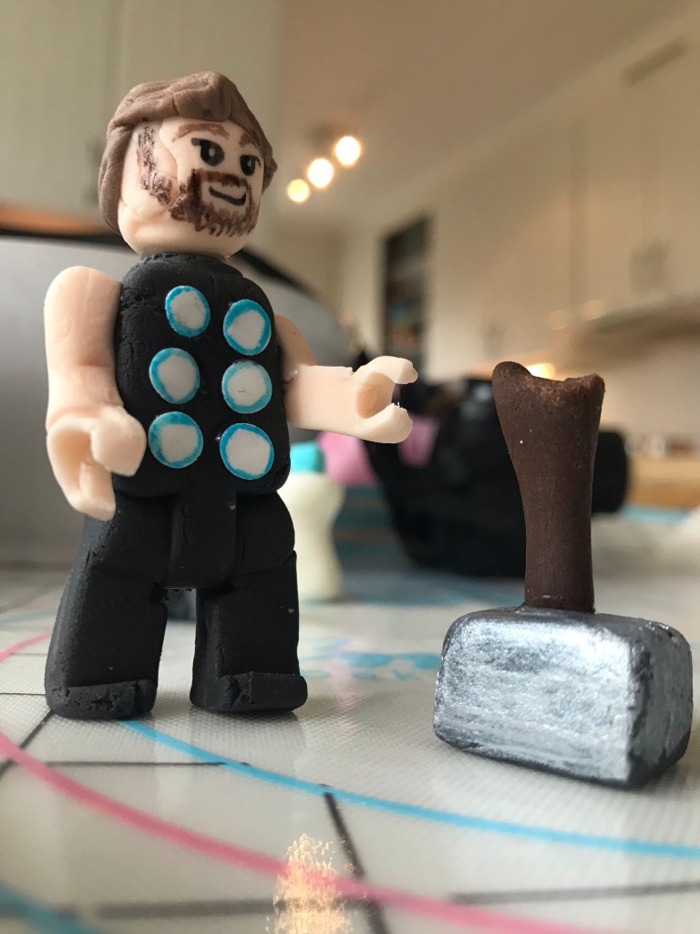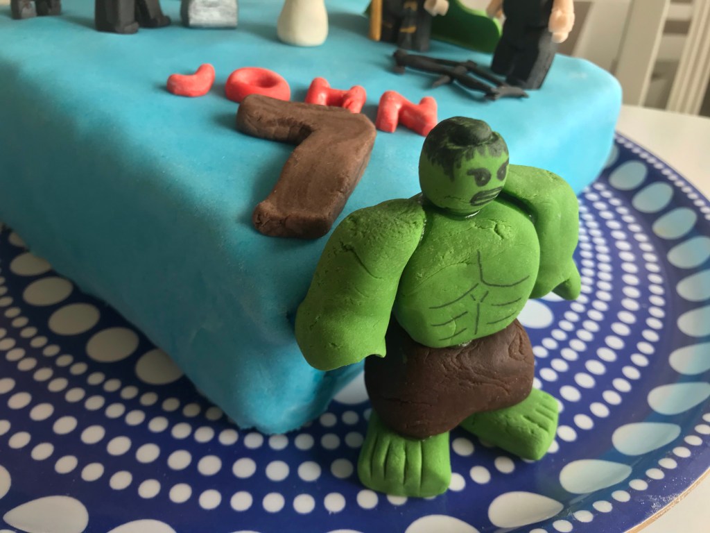 I år ville han ha en Marveltårta. Så klart. Allt kretsar kring de hjältarna för tillfället.