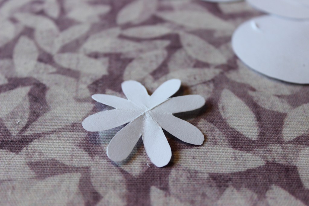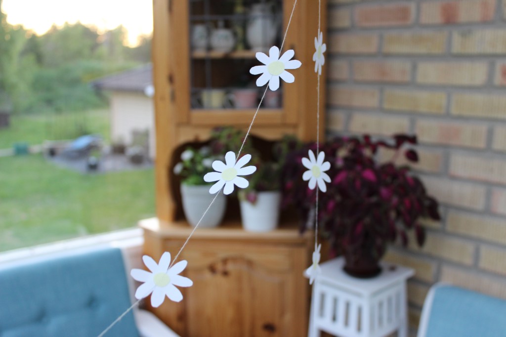 Pappersblommorna i girlangen ska likna prästkragar.