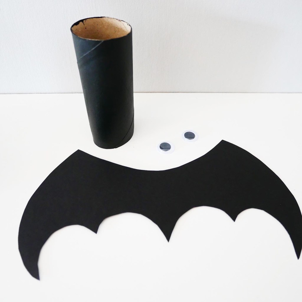 Det här pysslet passar för barn i alla möjliga åldrar. Fladdermössen blir charmigare om vingarna inte är exakt utklippta och toarullen behöver inte vara helt täckt av svart färg.