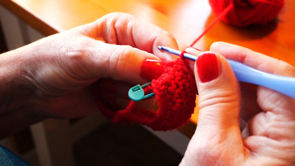 • Varv 1-10: Virka 1 fast maska (fm) i varje lm. Virka i spiral utan avslutande varv, sätt markör i första maskan på varvet så är det lätt att hålla koll på varven.