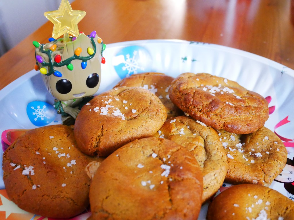 Strö över lite havssalt. Låt svalna något. Och ät. Så gott! Som segmjuka tjocka pepparkakor, salt på toppen och en söt fyllning i. Mums!