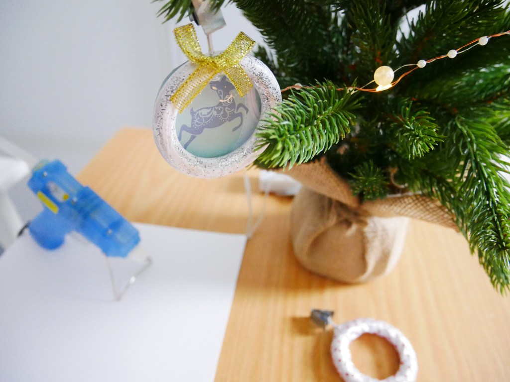 Vissa limmade jag i stället på några renar och granar. Jag gjorde också en liten tomte av självtorkande lera. Det här är också ett pyssel som passar bra att göra med barn, låt dem måla och limma på paljetter. Det kommer vara populärt!