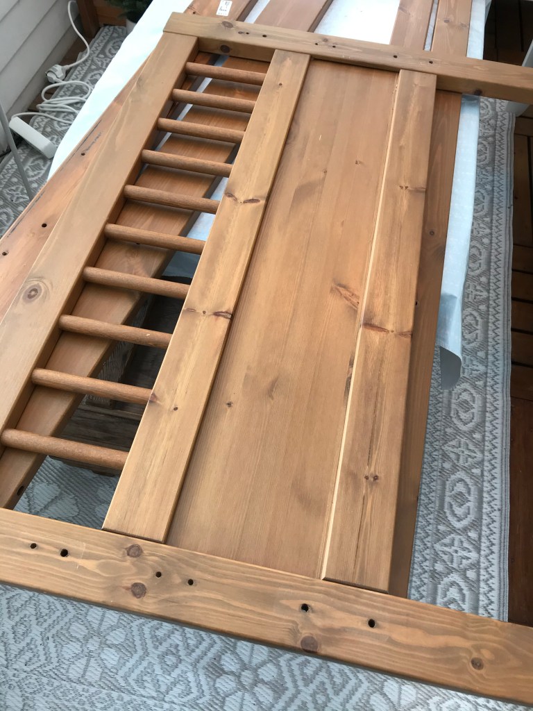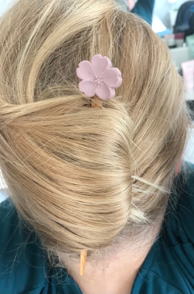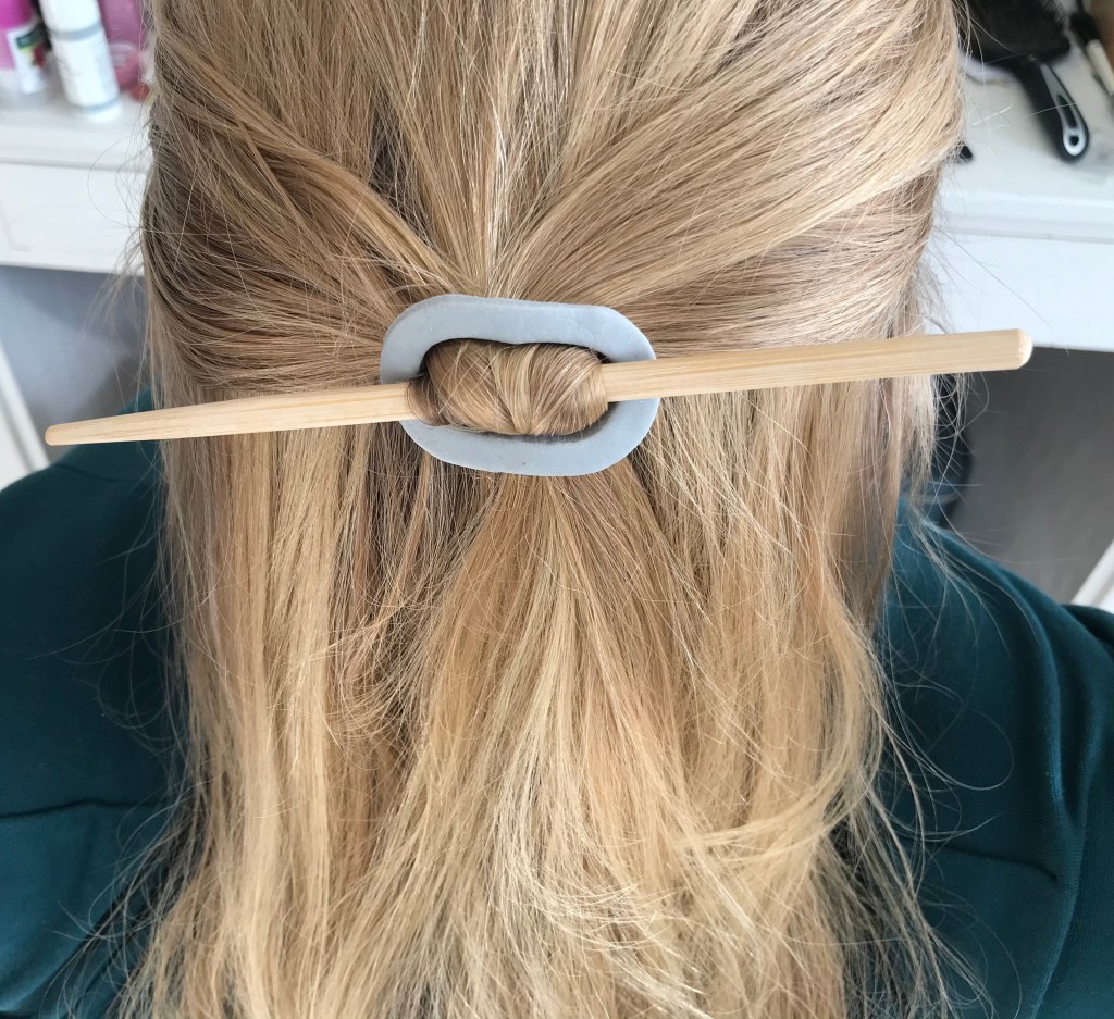 Saras återbruksprojekt den senaste tiden. Ätpinnarna som fick bli hårnålar är slipade med sandpapper och vissa av dem betsade och dekorerade. Det grå ovala hårspännet är gjort av Fimo leather effect och den rosa blomman av vanlig Fimolera. ”Bomullsrondellerna” är gjorda av en gammal handduk med sicksackade kanter och förvaras i en gammal tops-burk. Tvättas i tvättpåsar. En gammal sängstomme fick bli blombänkar. Eventuellt kommer de gamla skruvhålen att spacklas igen och bänken målas, men funkar också som den är.