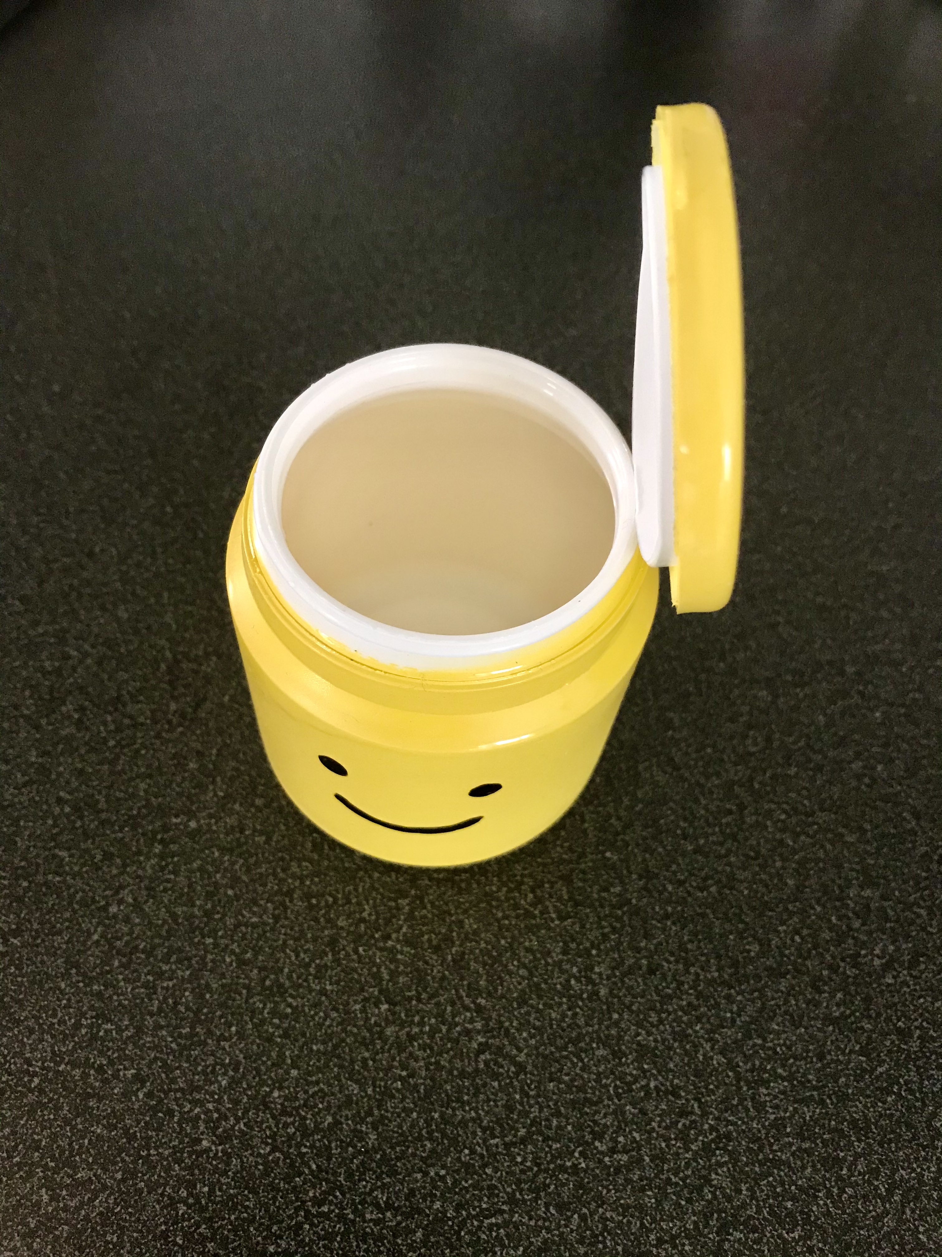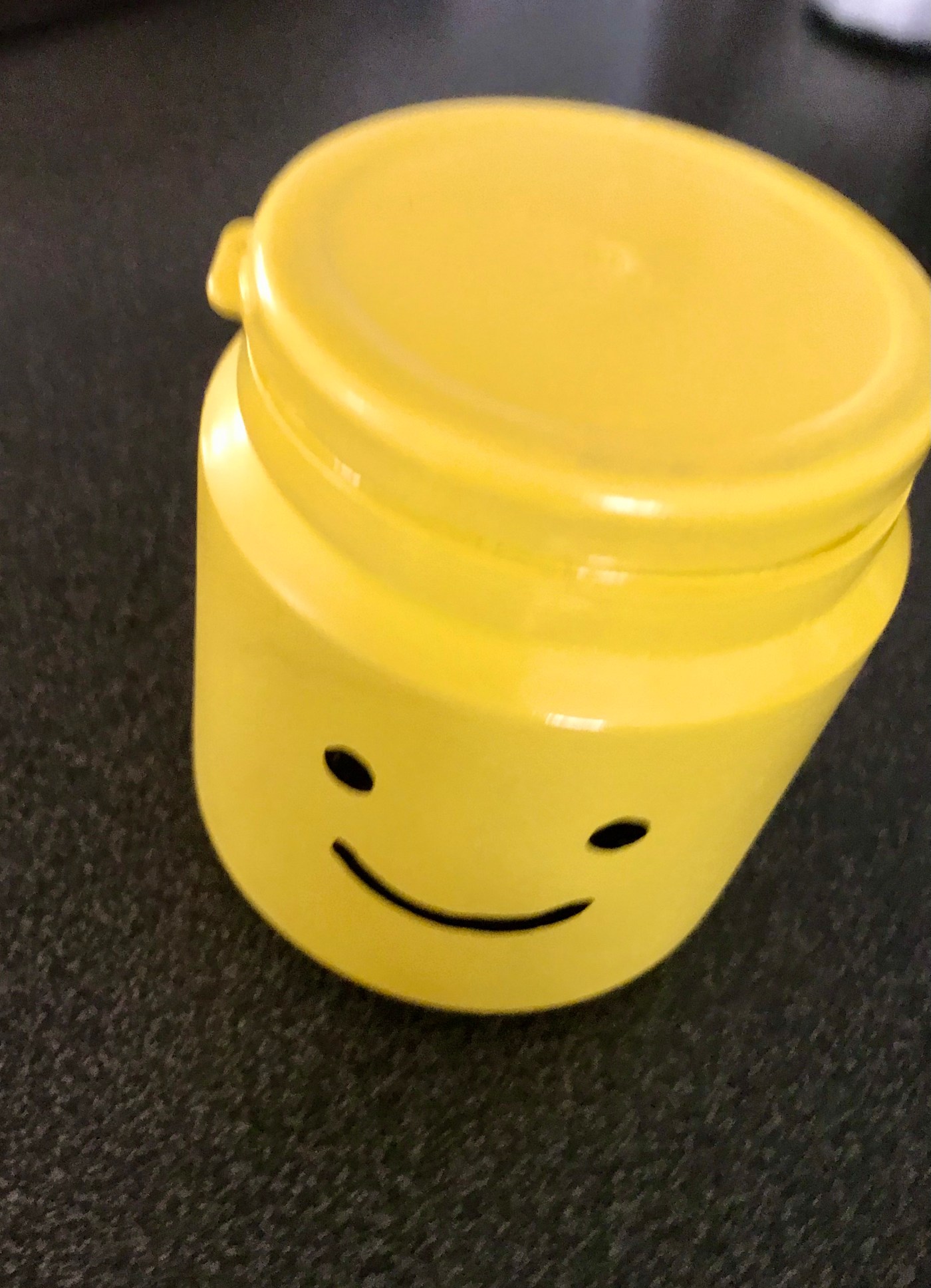 Hursomhelst, jag samlar på allt möjligt skräp eftersom det kan komma till nytta nån gång, och nu hade jag en tom plastburk som innehållit tuggummin (av märket Zinq). När jag tittade på den insåg jag att formen liknade huvudet på en legogubbe.
