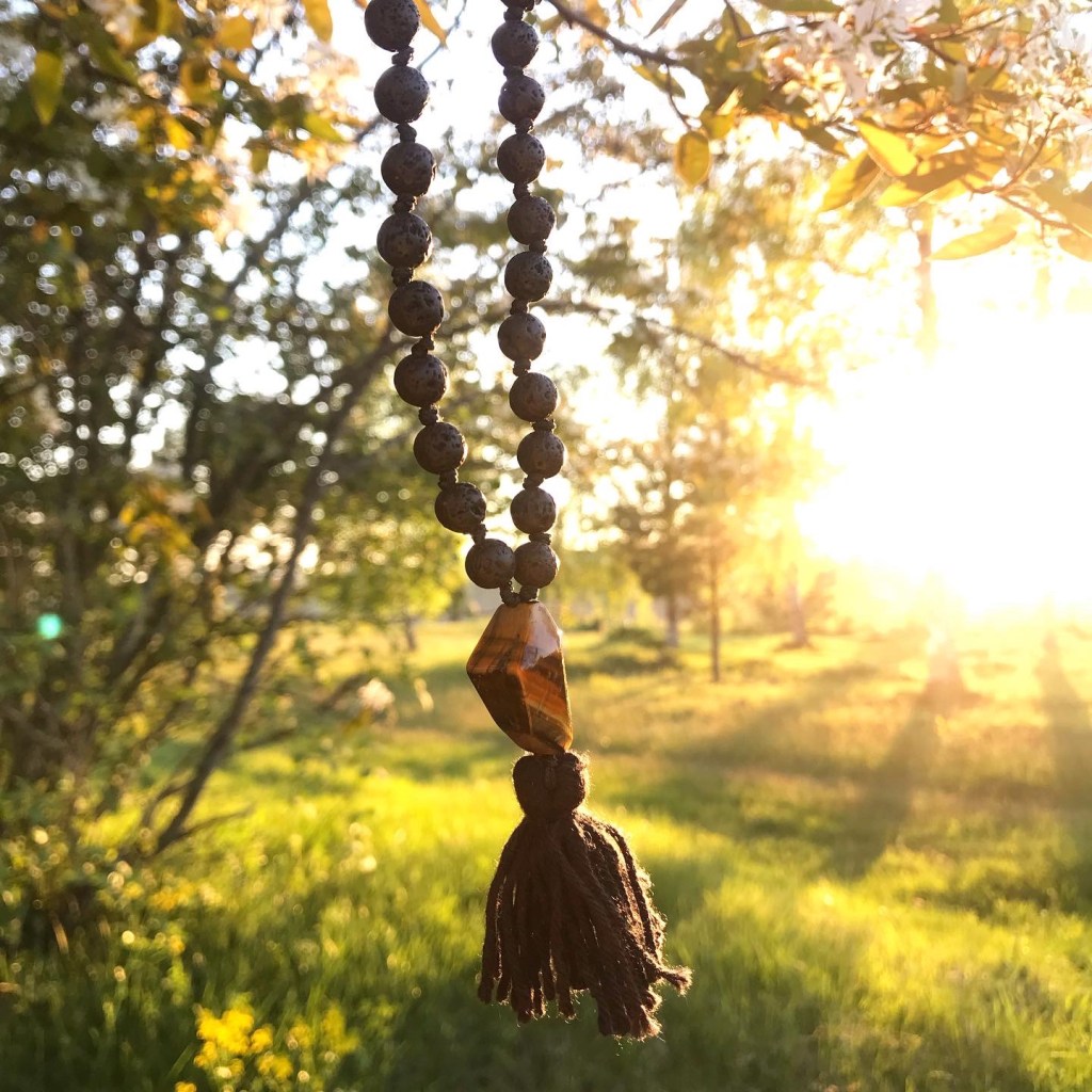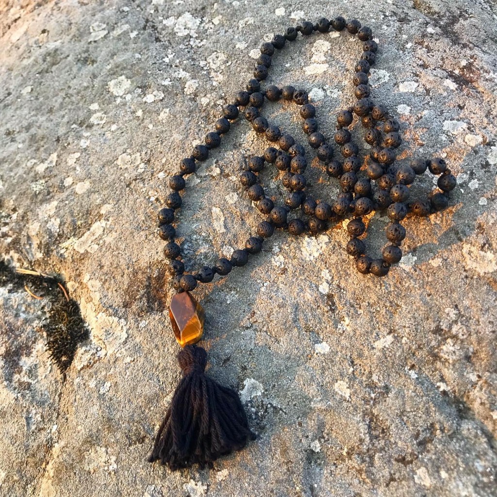 Jag älskar att knyta malahalsband så jag har faktiskt gjort ett till. Av lavasten och tigeröga. Älskar att bära det.