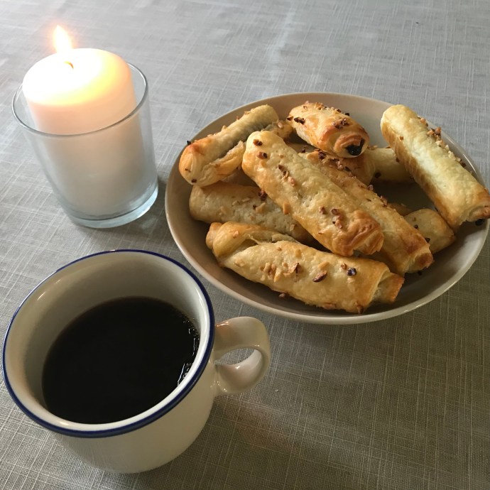 Det börjar bli mörkt och ruggigt ute, så till dagens frukoststund letade jag fram ljus för lite mysfaktor. Jag fick också lite feeling och bestämde mig för att baka croissanter till morgonkaffet, men det blev inte riktigt som planerat… Jag fick något slags hjärnsläpp när jag skar upp den köpta smördegen – bitarna blev för…