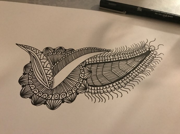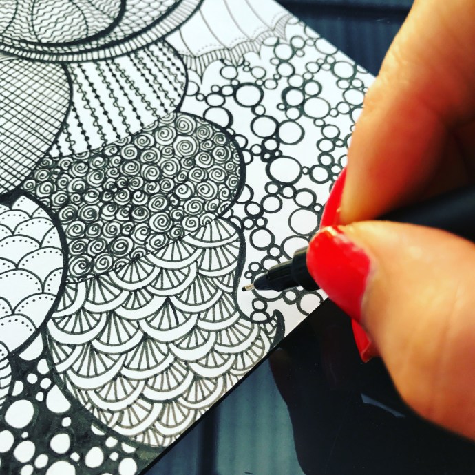 För ett tag sedan inledde jag semestern med egentid på hotell. Vilken lyx. Jag passade så klart på att pyssla en del också. Skulle bland annat rita en tavla till min kära vän som fyllde 50 år. Ville ge henne något personligt och inte bara ett presentkort. Tanken var att bara låta krumelurerna doodlas fram…