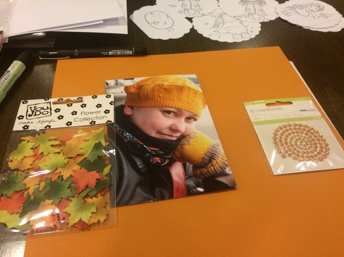 Här är mitt höstkort i höstfärger: Le – det finns inget dåligt väder. Ritade dit en glad mun på gorjussflickan. Här är systerdotter Mellemis bidrag. Ljuslyktor med höstlöv. Löven limmades fast med vanligt limstift på tomma glasburkar. Smart, höstigt och fint! Hon gjorde även det här höstträdet: Nu dags för julpyssel!!! November…