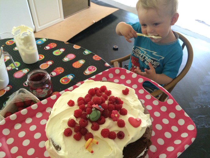 John, min son som är två år och snart fyra månader, har ätit tårta tidigare. I helgen gjorde han en egen tårta. Vi håller på att riva köket hemma (om det syns något på bilderna) så det här blev en rolig paus mitt i stöket. Det var lite svårt att komma i gång… I…