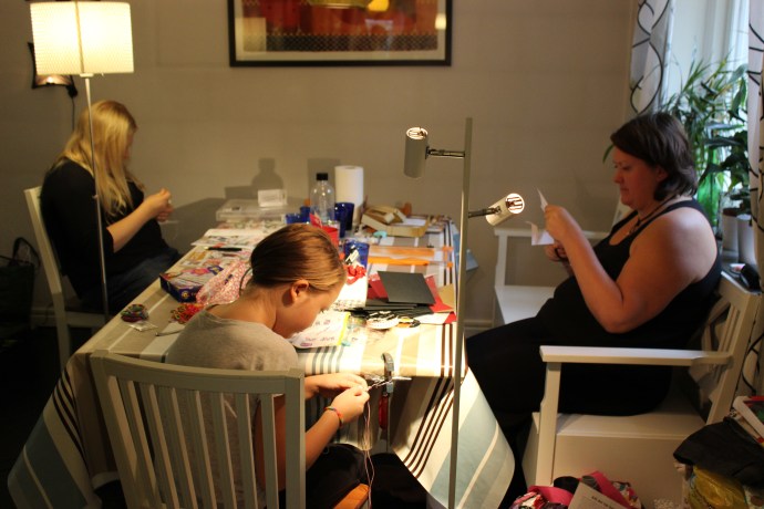 I helgen samlades vi tre systrar, mamma, moster och Katjas äldsta dotter Marja för att pyssla tillsammans. Vi fick en hel del gjort; eget papper, julkort, nyckelring och armband bland annat. Marja var den effektivaste pysslaren och skapade alster på alster. Här är lite bilder från helgen: Här river vi gammalt papper för att göra…
