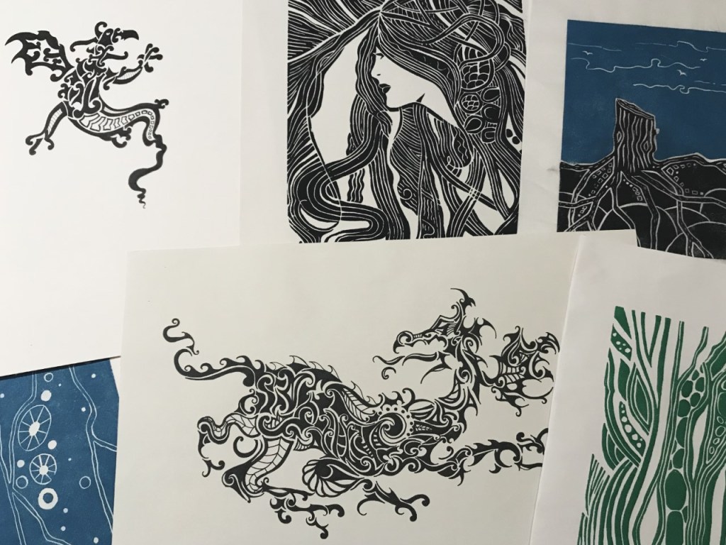 Jag har alltid tyckt om att rita. Så länge jag kan minnas har jag haft en penna och block nära till hands. Som ung blev det ofta modeteckningar med egendesignade kläder som fyllde ritblocken, men senare blev det i stället tuschteckningar med mer abstrakta mönster och tygtryck som jag ägnade mig åt. Den senaste tiden har jag fastnat för linoleumtryck. Jag gillar enkelheten i tekniken och det fysiska hantverket med att skära ut mönster i tryckplattorna. Även om ritandet varit nummer ett för mig har jag alltid samtidigt pysslat med lite av varje på sidan om: papperspyssel, smycken, sömnad, återbruk – ja, allt möjligt kreativt. Det är helt enkelt kul och utvecklande att ha ett eller flera pysselprojekt på gång!
