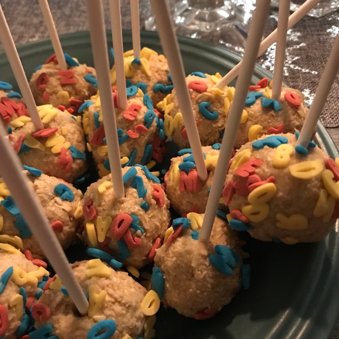 På Lidl finns just nu roligt och billigt strössel. Givetvis åkte jag förbi med sonen och köpte tre burkar. Snöflingor, bokstäver och julströssel. Och när man är hemma och vabbar är bakning bra tidsfördriv. För att testa nya strösslet gjorde vi havrebollar med vit choklad, kokos och citron. Gott. Receptet hittade jag i ett gammalt…